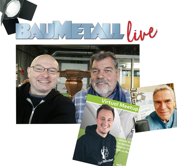 Am 10. März 2021 fand auf dem Digital-Mindset-Server das Zoom-Meetup „Digitalisierung im Handwerk“ statt. Gastgeber Bastian Brunotte (Lotse bei Digital Mindset und Messeschiff-Co-Moderator) befasste sich gemeinsam mit Hans-Peter Rösch (Meister-Ausbilder und Abteilungsleiter Metallbau der RMS-Klempnermeisterschule Stuttgart) und Andreas Buck (BAUMETALL-Chefredakteur, Klempnermeister) mit Chancen und Möglichkeiten der Digitalisierung bei der Aus- und Weiterbildung im Handwerk.