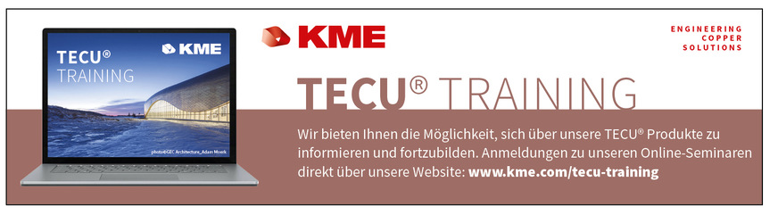 Die langlebigen TECU Produkte von KME bieten vielseitige Möglichkeiten: Natürliche Oberflächen aus Kupfer und Kupferlegierungen geben eindrucksvolle Gestaltungsvarianten an die Hand. Vorgefertigte Systemelemente ermöglichen die unterschiedlichsten Lösungen, von der freien Form bis zur schnellen und wirtschaftlichen Realisierung großer Flächen. Der Hersteller wirbt damit, dass TECU Produkte am Objekt lebendig werden.