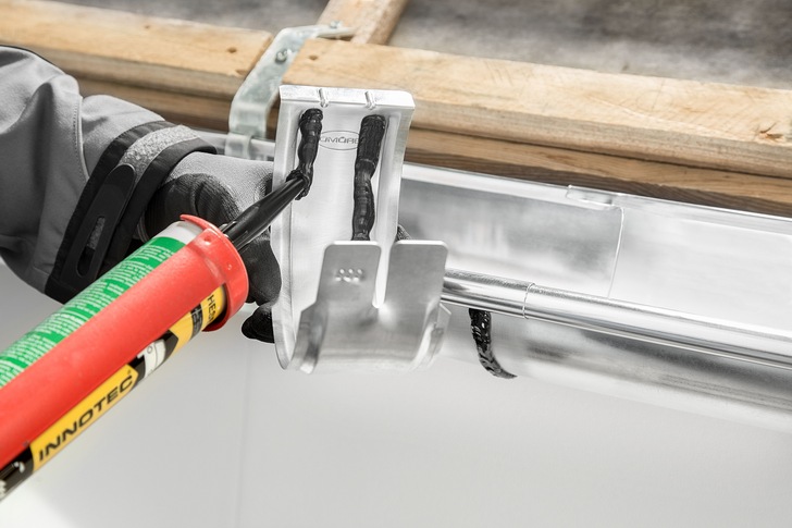 Die Klebetechnik kann vielseitig eingesetzt werden. So können nicht nur Rinnen miteinander verbunden werden, sondern auch Rinnenböden befestigt oder gerissene Lötnähte repariert werden. Die Verbindungsmöglichkeit ist somit auch gut in der Sanierung einsetzbar.