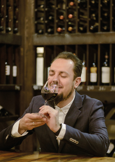 Während einer Weinprobe prahlt Alfred mit seiner Gabe, ein Meister