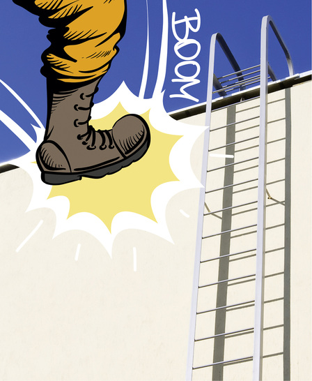 Fliegt das Werkstück dann in Richtung der Abfall-tonne, wird der Spenglertritt zum sogenannten „Tonnentritt“. Führt diese völlig ungeeignete Form der Blechbearbeitung schlussendlich zum totalen Ausflippen des Spenglers, bezeichnet man diesen Tritt auch als „Flippertritt“.