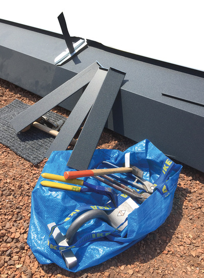 Voneinander lernen Der BAUMETALL-Treff war erneut überaus tatkräftig. Gemeinsam mit den Gastgebern und dem gern gesehenen Gast und iib-Präsidenten Peter Trenkwalder erarbeiteten die Kollegen ein Austauschprogramm für junge Spengler. Dieses soll bereits im kommenden Jahr dafür sorgen, dass sich die beiden Spenglernationen besser kennenlernen. Metall verbindet eben und ich bin sicher, dass wir noch viel voneinander lernen können. Übrigens: Die oben gezeigte, schwedische Werkzeugtüte wurde auf einem deutschen Dach entdeckt.