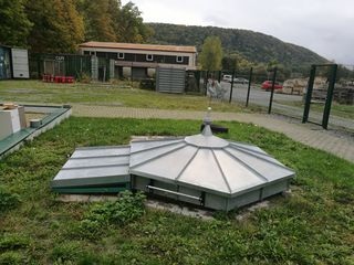 Dort befindet sich auch ein Gully an dem Flüssiggasexplosionen simuliert werden können. Dieser Versuchsaufbau musste vor Niederschlagswasser geschützt werden.