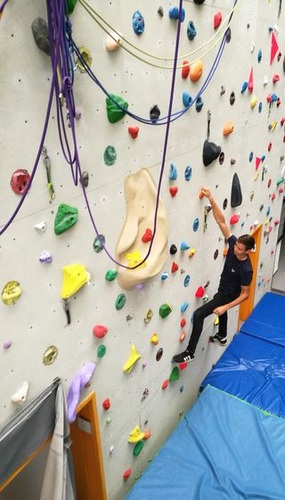 „Erstmal ist es schon wichtig, dass man sich auch in der Höhe sicher fühlt und natürlich macht es auch richtig Spaß, wenn wir an der Kletterwand sind.“ – Paul Hanusch