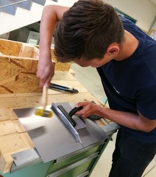 Gezieltes Anwenden von theoretisch erlerntem Wissen? Im BBZ in Meiningen ist das kein Problem, denn in der vollausgestatteten Klempnerwerkstatt kann man einmal in der Woche ausprobieren, was man an den Tagen davor im Unterricht gelernt hat. Ob an Dachmodellen Mauerecken und Bünderfalze zu üben, die Kunst der Traufabschlüsse zu verfeinern oder Abzweige einmal selbst zu bauen, hier kann (fast) jeder Klempnerwunsch erfüllt werden