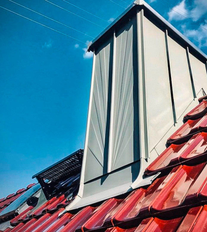 Dabei hat der Herzblutspengler einen hohen Anspruch an sich und seine Details. Er verrät: „Wenn ich mich in eine Baustelle verguckt habe, möchte ich die auch ordentlich bis zum Schluss durchziehen.“ Mit Liebe fürs Detail bedeutet bei Bickel neben ausgefeilten Falzlösungen für Dachexperten auch extravaganten Rinnenschmuck, formschöne Kamineinfassungen, Gesimsabschlüsse mit zusätzlichen Linienkantungen oder ansprechend gestaltete Prallbleche. Diese Sorgfalt für Details bleibt auch beim Kunden nicht unbemerkt. Dabei bekommen diese bei Interesse auch immer die fachkundige Erklärung zur Detaillösung geliefert. Besonders stolz ist Bickel darauf, dass ihn mittlerweile andere Handwerkskollegen aus der Region an ihre Kunden weiterempfehlen. „Geh doch mal zum Christian Bickel, der findet dafür eine gute Lösung.“