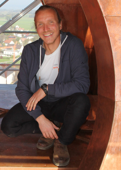 Besonders gerne führt der Dachhandwerker detailreiche Arbeiten an Dach und Fassade aus. So war er an der umfangreichen Sanierung der mächtigen Doppelzwiebel der neubarocken römisch-katholischen Pfarrkirche der Gemeinde Höchst (Bezirk Bregenz in Vorarlberg, Österreich) beteiligt.
