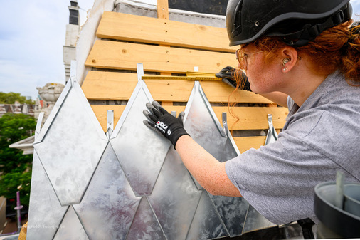 Dass Roos einmal Teil dieses Handwerks werden würde, war keineswegs selbstverständlich. Als junge Frau und Studentin des Studiengangs International Facility Management erschien ihr die Zinkverarbeitung zunächst als Berufsfeld, das wenig mit ihrem Lebensweg zu tun hat. Doch dieser Eindruck änderte sich schlagartig, als sie erkannte, wie viel handwerkliche Präzision, Kreativität und Gefühl in diesem Beruf stecken. Besonders fasziniert ist sie von der Verbindung aus technischer Genauigkeit und gestalterischer Freiheit. „Zink ist nicht einfach nur ein Baumaterial“, erklärt sie. „Es erfordert Können, Geduld und ein gutes Auge für Details. Und genau das macht jedes Projekt so spannend und einzigartig.“