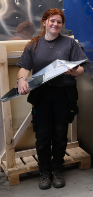 In ihrem Vater sieht Roos nicht nur einen engen Arbeitskollegen, sondern auch einen erfahrenen Mentor. Sie erklärt: „Mein Vater verfügt über unglaublich viel Wissen und Erfahrung – ich lerne täglich von ihm.“ Um ihre Fähigkeiten weiterzuentwickeln, nahm Roos kürzlich am BAUMETALL-Workshop „Metallflugzeuge aus Titanzink bauen“ teil und war begeistert. In den Werkhallen der Flugzeugspengler von Kaelin und Junkers eröffnete ihr dieser Kurs spielerisch und gleichzeitig technisch fordernd neue Perspektiven im Umgang mit dem Material, mit dem sie täglich arbeitet. Der Workshop zeigte ihr einmal mehr, wie vielseitig Titanzink tatsächlich ist.