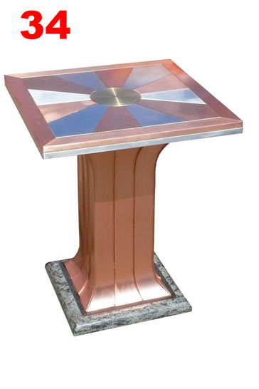 10.11.2009 | Druckvorschau BeistelltischGeschwungenes Tischbein mit Metallpatchwork-PlatteMaterial: Kupfer, Titanzink, MessingVerbindung: Falztechnik nach außen und nach innen, Granitplatte