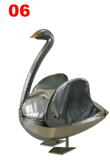 10.11.2009 | Druckvorschau RaketenschwanZweiteiliger Rumpf mitDrahteinlageMaterial: Titanzink, Messing, EdelstahlVerbindung: LöttechnikFüße Edelstahl, Drahteinlage an den Halbschalen des Rumpfes, getriebener Hals