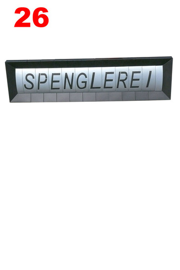 10.11.2009 | Druckvorschau WerkstattschildGewölbte Schriftfläche mit gegenläufig gewölbtem RahmenMaterial: Farbaluminium / TitanzinkVerbindung: Falztechnik