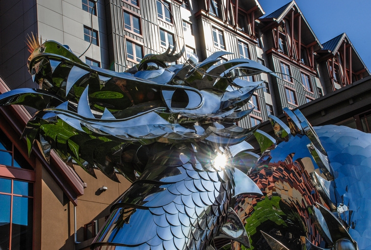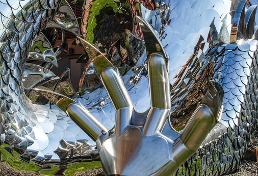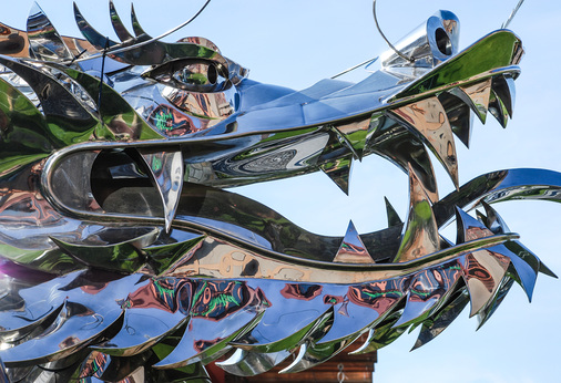 Kevin Stone kreierte den größten handgefertigten Drachen der Welt. An den Segmenten aus rostfreiem Stahl arbeitete der Metallbildhauer zwei Jahre lang. Sieben Tage die Woche. Die Premiere des Meisterstücks feierten Tausende Besucher 2009 auf dem Gelände des Künstlers im kanadischen Chilliwack, British Columbia. Eigentlich restauriert der erfahrene Metallspezialist Oldtimer, wenn neben der schöpferischen Arbeit noch Zeit bleibt.