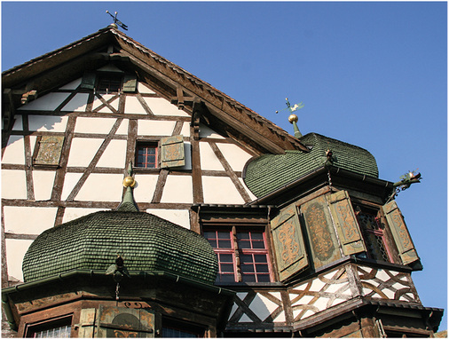 Spengler-Drachen ganz anderer Art schmücken das verwunschene Hotel Drachenburg. Zu finden ist das märchenhafte Gebäude am Bodensee im schweizerischen Gottlieben.