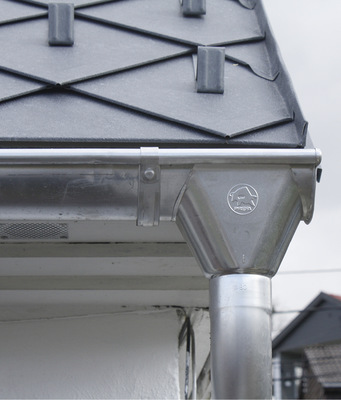 An Traufe und First wurde eine Be- und Entlüftung eingebaut. Die Firstausbildung ist optisch an die norwegische Schiefereindeckung angepasst. Sie weist eine Entlüftung auf der wetterabgewandten Seite des Dachs auf. Abgerundet wurde das Dachsystem mit der passenden Dachentwässerung aus walzblankem Aluminium. „Den Mix zwischen dem klassischen Prefa-Dach und dem norwegischen Charakter konnte man sehr gut miteinander verbinden“, begründet Dachexperte Gunnar Schneider die Entscheidung für das Aluminiumdach. „Da jedes Element einzeln befestigt wird, sind Prefa-Dächer bekanntermaßen besonders sturmsicher. Die Farbe Steingrau passt sich außerdem sehr schön an die Umgebung an.“ Ein weiterer Pluspunkt: Der Hersteller gibt 40 Jahre Garantie auf Farbe und Material der verarbeiteten Aluminiumprodukte.