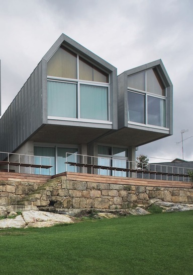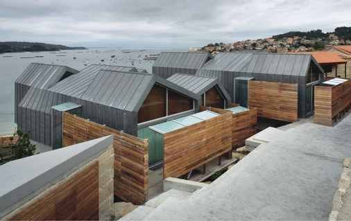 Ungewöhnliche Wohnhäuser schmiegen sich in Vilariño, einem kleinen galicieschen Ort in Spanien, an die Küste. Wie kleine Fischerboote scheinen die zahlreichen, auf das Mauerwerk aufgesetzten, Zinkdächer hin und her zu schwappen - auf dem Meer tanzend. Gekonnt verbindet Architekt Alfonso Penela Fernández seine Vorstellung von moderner Architektur mit der Geografie und Kultur der Region. Etwa 60 % des spanischen Fischfangs stammt aus Galicien. Doch gerade die Kombination mit den Produkten der Landwirtschaft macht den besonderen Reiz der atlantischen Küche aus. Landwirtschaft und Fischfang waren schon immer von besonderer Bedeutung für Galicien und für viele Gemeinden die Haupteinnahmequellen. Beides prägt bis heute das Land und wird von Alfonso Penela Fernández mit in den Architekturentwurf aufgenommen: Die Form der Gebäude erinnert an alte Bauernhäuser, die Dächer orientieren sich am Konstruktionsprinzip von Schiffsrümpfen.