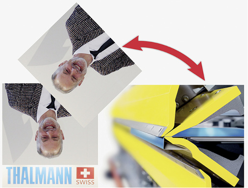 Wenn es sein muss, stellt sich Thalmann-Geschäftsführer Marco Cappello für seine Kunden sogar auf den Kopf. In BAUMETALL-Ausgabe 6/2018 war es andersherum: Die BAUMETALL-Software zur Anordnung der Artikel hat uns einen Streich gespielt und das Thalmann Produktfoto des TD Doppelbiegers auf den Kopf gedreht. Wir bitten, diesen Fehler zu entschuldigen.