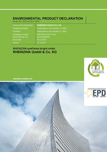 Die Grundlage für diese Deklarationen war bei verschiedenen internationalen Programmhaltern bislang unterschiedlich, was die Vergleichbarkeit der Ökobilanzergebnisse stark einschränkte. Deshalb ist die unter dem Dach der ECO- Plattform angestrebte gegenseitige Anerkennung von Umwelt-Produktdeklarationen sehr zu begrüßen“, erklärt Frank Neumann, Leiter Marketing / Anwendungstechnik, Rheinzink GmbH & Co. KG. Zu den Gründungsmitgliedern der ECO-Plattform zählt neben dem Institut Bauen und Umwelt e.V. als Programmhalter in Deutschland auch der Europäische Baustoffverband Construction Products Europe. Alle „ECO-EPDs“ der verschiedenen Programme werden künftig zentral auf der Website der ECO-Plattform registriert.