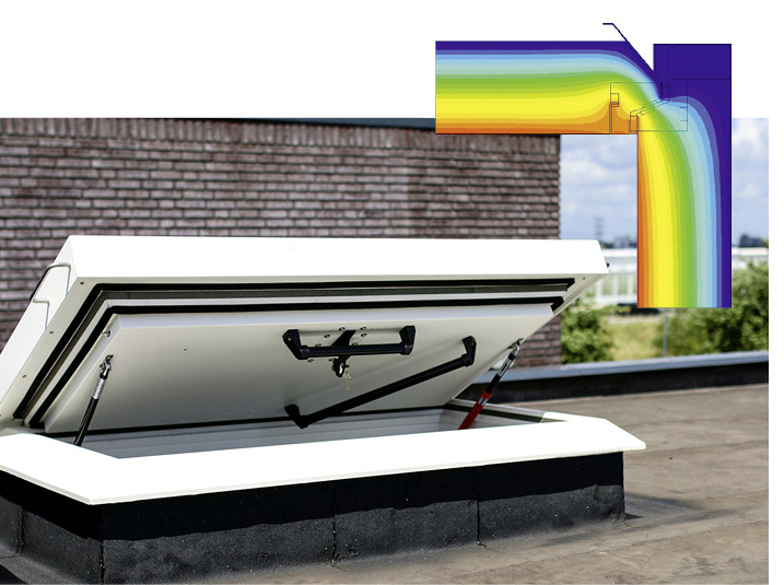 Der Ausstieg auf ein Flachdach stellt immer eine Schlüsselstelle hinsichtlich des Wärmeschutzes eines Gebäudes dar. Um sowohl auf dem Dach platzierte technische Einrichtungen als auch das Dach selbst regelmäßig kontrollieren und warten zu können, ist ein sicherer, schneller und komfortabler Zugang von innen erforderlich. Mit dem neuen ThermoTop hat Staka einen Flachdachausstieg entwickelt, der einen bisher einzigartigen, vom TÜV bestätigten Gesamt-Wärmedurchgangskoeffizienten von nur 0,21 W/m2K erreicht. Der geringe Wärmedurchgangskoeffizient (U-Wert entsprechend EN-ISO 10077-2) basiert auf einer effektiven thermischen Trennung des Bauelements. Durch ein innovatives Zwischenprofil sind Innen- und Außenseite der hochwertigen Edelstahlkonstruktion vollständig voneinander getrennt, sodass kein Wärmeübergang von innen nach außen stattfindet. Darüber hinaus verfügt der Flachdachausstieg über ein patentiertes Deckelschließsystem, das für einen luftdichten Abschluss sorgt. Dadurch lässt sich mit dem ThermoTop ein Wärmeschutzniveau erzielen, das mit dem eines durchgehend wärmegedämmten Daches vergleichbar ist.