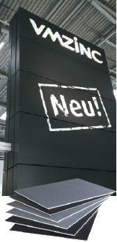 Mit „VMZ Composite“ präsentiert VM-Zinc aus Essen eine neue Verbundplatte aus zwei vorbewitterten Titanzinktafeln und einem Polyethylen-Kern. Die perfekte Ebenheit und hohe Festigkeit bei einem vergleichsweise geringen Gewicht eröffnen neue architektonische Möglichkeiten für unterschiedlichste Gebäudeformen. Der 3 mm starke Polyethylen-Kern wird im Schmelzfixierverfahren auf die 0,5-mm-Zinkplatinen aufgebracht. Die zugleich chemische wie mechanische Haftvermittlung bewirkt hohe Ablösebeständigkeit und Stabilität. Das insgesamt 4 mm dicke Paneel mit einem Gewicht von 12,2 kg/m 2 wird in einer maximalen Breite von 1000 mm und den Standardlängen 2000 mm, 3000 mm und 4000 mm angeboten. Auf Anfrage sind auch Längen bis zu 6000 mm möglich. Die maximale Breite kann auf 1250 mm erhöht werden, dann aber mit 0,7-mm-Platinen. Die Verbundplatten stehen in den vorbewitterten Oberflächenqualitäten Quartz-Zinc und Anthra-Zinc zur Verfügung und können auf Metallunterkonstruktionen sichtbar befestigt oder als Kassette eingesetzt werden.