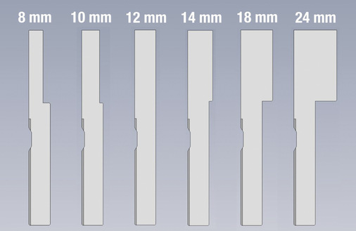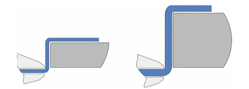 Immer dann, wenn Profile einen größeren Freibereich vor dem Biegewangenwerkzeug erfordern, kommen XL-Biegewangenwerkzeuge zum Einsatz. Sie sind für unterschiedliche Werkzeugbreiten erhältlich. Eine weitere Besonderheit stellen sogenannte Vorlaufwerkzeuge dar. Sie ermöglichen die Herstellung diverser Biegungen im Innenbereich entsprechender Schwenkbiegeteile. Durch die Form der Werkzeuge wird das Blech bereits beim Spannen mit der Oberwange vorgeformt. Die Biegewange muss daher nur noch die verbleibenden Winkelgrade schwenken, um beispielsweise eine 90°-Biegung zu erzeugen. Der Wangenkörper verbleibt dabei unterhalb des horizontal herausstehenden Biegeteils.