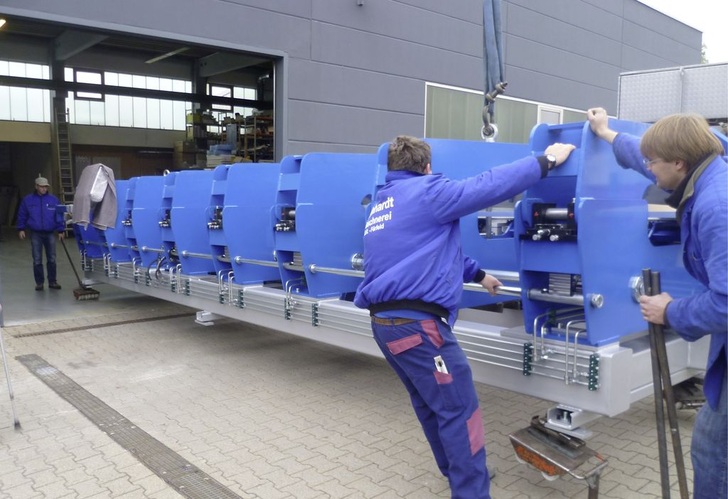 … der geht mit der Zeit. Diesem Zitat gerecht werdend entwickelt Volker Reinhardt das Leistungsspektrum seines Fachbetriebes ständig weiter und modernisiert seine Betriebsausstattung in regelmäßigen Abständen. Die jüngste Errungenschaft ist eine Variobend Langabkantmaschine der Modellreihe EB. Mit einer Arbeitslänge von 8640 mm und einer Einlegetiefe von 1250 mm ist die Maschine mit der Bezeichnung EB 8.2,00-1250 vielseitig einsetzbar. Bekanntlich nutzen die meisten Klempnerfachbetriebe, wenn überhaupt, 6-m-Langabkantmaschinen. Wer Volker Reinhardt nach dem Grund, eine 8m lange Variobend einzusetzen, fragt, erhält eine einfache Antwort: „Wir standen immer wieder vor dem Problem, dass unsere Bauteile an Attikaabdeckungen knapp über 6 m lang sein mussten. Entweder wurden die ca. 6,20 m langen Abdeckungen durch hin- und herschieben auf unserer alten 6-m-Maschine gefertigt oder aber mit entsprechend aufwendigen Nähten ausgestattet. Speziell dann, wenn wir die Attikalängen auf das Falzraster unserer rollnahtgeschweißten Edelstahlbedachungen abstimmen, ergeben sich Baulängen zwischen 6,20 m und 6,50 m.“
