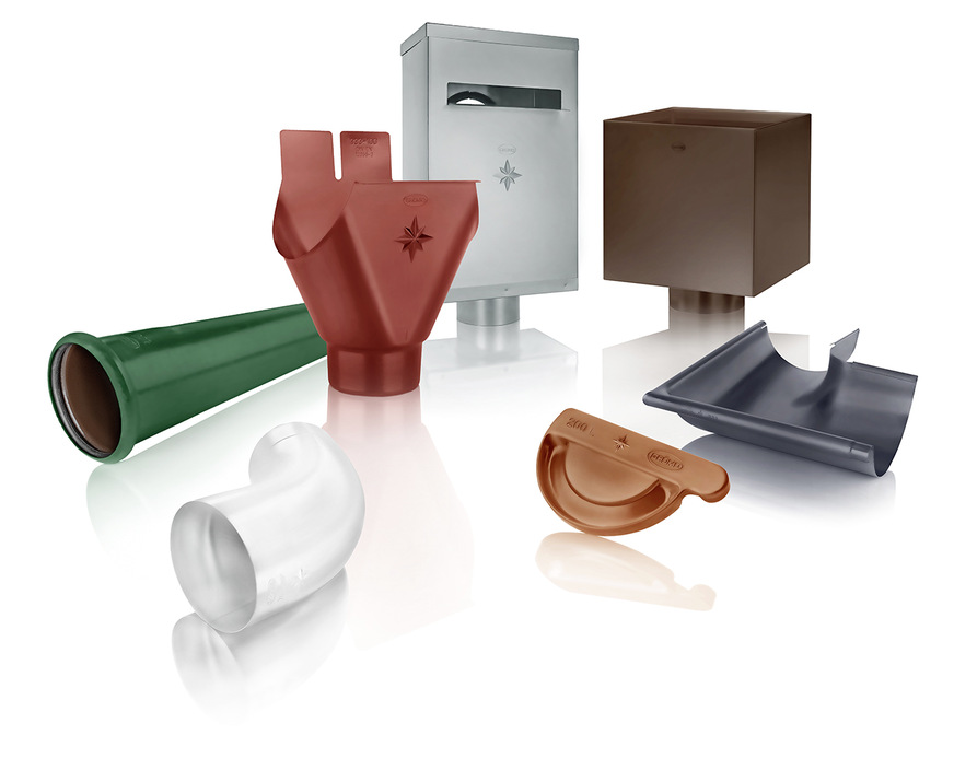Der Star am Grömo-Stand war die Messeneuheit Alustar: ein komplettes Dachentwässerungssystem aus farbbeschichtetem Aluminium. Von der Dachrinne über das Regenfallrohr bis zum Zubehör stammt alles aus einem Guss, ohne Materialabweichungen oder Diskrepanzen in der Produktgeometrie. Die sieben Farben des Standardsortiments – Anthrazit, Hellgrau, Weiß, Moosgrün, Ziegelrot, Oxydrot und Testa di Moro – sind auf alle gängigen Dach- und Fassadensysteme abgestimmt, sodass ein harmonisches Erscheinungsbild entsteht. Für die passende Farbkombination stellt Grömo kostenlos einen Farbfächer zur Verfügung. So kann der gewünschte Farbton auf andere Gewerke der Gebäudehülle angepasst werden. Und wer es noch individueller haben möchte, kann aus 206 weiteren Farben des RAL-Farbraums auswählen. Ein weiteres Novum sind die Duofalz Band- und Tafelbleche, die die Alustar-Produktlinie komplettieren. Aufgrund der Beschichtung mit glatter und strukturierter Oberfläche in einem Produkt sind die Bleche beidseitig verwendbar und sorgen auf diese Weise für maximale Flexibilität bei der Verarbeitung.