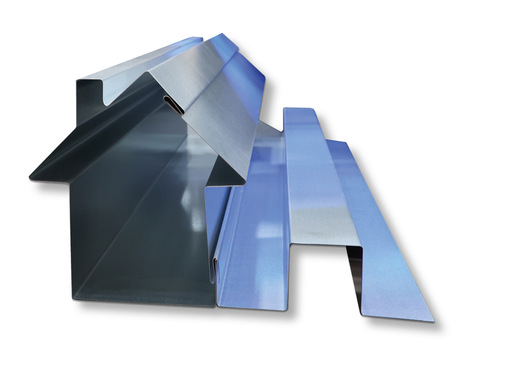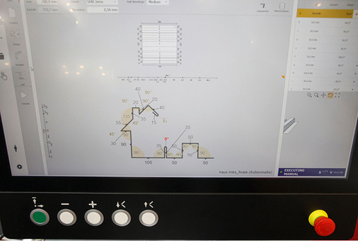 Jede Jorns-Doppelbiegemaschine JDB bringt eine Grundausrüstung mit, die durch den modularen Maschinenaufbau individuell ausgestattet werden kann. Was mit den innovativen Maschinen aus Lotwil in der Schweiz dank des durchdachten Maschinenaufbaus samt Werkzeuggeometrie „G“ realisiert werden kann, zeigte Jorns-Spezialist Reto Staeger (Marketing- & Verkaufsleiter, Stv. CEO, Mitglied des Jorns-Management-Teams) auf der Blechexpo. Dazu nutzte der Maschinenexperte den Freiraum vor der Maschine so aus, dass es gelang, ein Profil in Form eines Hauses mit Schornstein aus einem Stück anzufertigen. Die um 290 mm zurückziehbaren Biegewerkzeuge schaffen vor der Maschine entsprechenden Platz für das Profil. Das in einem 38°-Winkel positionierte Klemmwerkzeug ermöglicht mit seinem großen Innenfreiraum, das teilgekantete Profil möglichst nahe an der Klemmstelle zu positionieren.