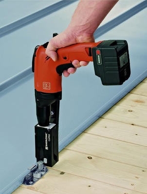 Dreh- und Angelpunkt der Systemlösung ist der von Rheinzink gemeinsam mit dem deutschen Markenhersteller Fein speziell entwickelte Clipfix-Magazinschrauber, eine meisterliche Innovation made in Germany. Mithilfe des Clipfix gehen Schnelligkeit und Präzision Hand in Hand, und zwar zugunsten einer größeren Stabilität der gesamten Dachdeckung. Pro Haft werden zwei Schrauben verankert, die durch die definierte Befestigung mithilfe des neuen Magazinschraubers kein Verdrehen und Verformen des Haftes mehr zulassen. Das Ergebnis ist eine rasche, qualitätsgesicherte Montage bei perfekter Ausführung, wobei der Akkubetrieb auch den unkomfortablen Druckluftschlauch ersetzt. Wie gesagt: Rheinzink ist von der Innovation so überzeugt, dass bei Verwendung der Systemkomponenten Befestigungshaft/Schraube, Rheinzink-Stehfalzscharen und der strukturierten Trennlage Vapozinc bzw. Air-Z (bei Bedarf) eine zehnjährige Garantie gewährt wird.