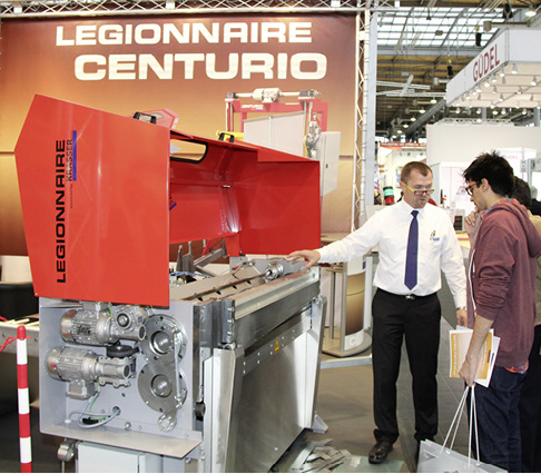 Mit der kompakten Blechspaltanlage Legionnaire richtet sich die Krasser GmbH speziell an Klempner und Spengler. Die bewährte Technik der Spaltanlage garantiert maximale Zeitersparnis bei der Bearbeitung unterschiedlicher Aufträge. Nach dem Einspannen des Coils wird das Blech automatisch justiert. Die Möglichkeit der Folierung des Blechs während des Schneideauftrages sowie der Einbau einer drehbaren Richtmaschine sind erweiterbare Optionen, die kundenspezifisch angepasst werden können. Am Touchscreen der Legionnaire oder direkt über den PC werden Angaben zu Länge, Breite, Materialtyp und Stückzahl programmiert. Entsprechend der Materialeigenschaften sind sämtliche Maschineneinstellungen wie zum Beispiel Schnittspalt und Schneidetiefe bereits hinterlegt und garantieren damit beste Schnittqualität. Außerdem verfügt die Spaltanlage über eine vollautomatische Messerpositionierung von bis zu acht Rollenscherpaaren. Die Maschine ermöglicht die Bearbeitung von Coils mit einer Breite von bis zu 1250 mm und einem Gewicht von 2000 kg. Bei Verwendung von angetriebenen Abcoilern sind Coilgewicht und Durchmesser nicht limitiert. Das Material wird in Längsstreifen gespalten und mittels einer Balkenschere quergeteilt.