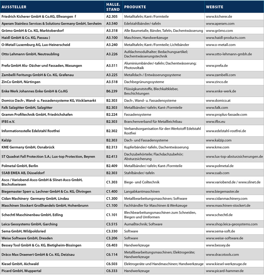 Es besteht kein Anspruch auf Vollständigkeit! Das Aussteller-Gesamtverzeichnis ist auf www.bau-muenchen.com/de abrufbar!