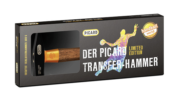 In diesem Jahr hat sich Picard erstmals im Bereich des Sport-Sponsorings engagiert. Die Zusammenarbeit mit dem Sport-Informationsdienst handball-world.de wird jetzt um eine besondere Variante des Secutec erweitert. Dieser Hammer hat durch sein besonderes Sicherungssystem eine Alleinstellung am Markt und ist deshalb für die limitierte Edition zum Transferhammer hervorragend geeignet. Diese Edition, ebenfalls streng auf 500 Exemplare begrenzt und nummeriert, ist durch das auffällige Logo von handball-world.de sowie den Schriftzug „Transferhammer“ gekennzeichnet. Die Aufmerksamkeit erzielende Verpackung mit einem stilisierten Handballer liefert auch hier den passenden Rahmen für diese limitierte Edition. Hergestellt wird sie, ebenso wie das umfangreiche Hammersortiment von Picard, am Stammsitz der Marke in Wuppertal-Cronenberg. Durch die Verbindung von traditioneller Fertigungstechnik und intelligenter Automation realisieren es die Hammermacher von Picard, die Produktion von Premium-Schlagwerkzeugen weiterhin in Deutschland durchzuführen. Die gleichbleibend hohe Qualität und Anwenderorientierung bis ins Detail sind dabei die Erfolgsfaktoren der Picard-Produkte.