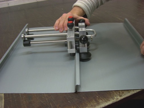 Bekanntermaßen erfreuen sich die Spezialwerkzeuge und ausgeklügelten Hilfsmittel des Klempnerausstatters M.A.S.C. großer Beliebtheit. Gleich an sechs Messeständen präsentieren die „Erfinder“ und „Finder“ neuer Klempnerwege Praxisnahes. Dabei steht der M.A.S.C.-Kombiroller KR1 im Mittelpunkt des Publikumsinteresses. Dieses universell einsetzbare Werkzeug ermöglicht eine absolut schonende Metallbearbeitung und ist daher besonders für empfindliche Materialoberflächen bestens geeignet. Der KR1 schließt und verformt unterschiedlichste Metallprofile. Beispielsweise gehören die Bearbeitung von Winkelfalz, Mauerabdeckung, Abdeckungstreifen, Stirnbrettbekleidung, Ortgangabdeckung, Fensterbank, Eckblende, Dachrandverwahrung und so weiter zu den Stärken des Multitalents. Einfach und schnell werden die Geräterollen gewechselt um verschiedene Arbeiten an unterschiedlichsten Profilen zu erledigen. Dabei kommen einzig die hochwertigen und kugelgelagerten Kunststoffrollen des Kombirollers mit der Metalloberfläche in Verbindung wodurch Bearbeitungsspuren nahezu ausgeschlossen werden.
