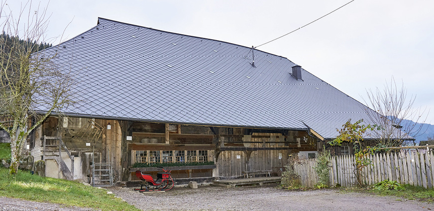 Das Bauwerk war inzwischen in die Jahre gekommen – vor allem das rund 400 m² große Dach der Gebäude-Nordseite. Bei einer Grundfläche von ca. 500 m² scheint die Fläche riesig, doch bei den Schwarzwaldhöfen sind Dächer bauartbedingt weit heruntergezogen und deshalb relativ groß. Auf der Südseite unterscheidet sich das Dach grundsätzlich. Hier springt etwa in der Mitte über dem Obergeschoss gewissermaßen ein Seitenflügel mit einem großen Giebel bis fast zur Firsthöhe vor, der ein eigenes Satteldach trägt. Auf der Ostseite dagegen führt eine befahrbare Rampe ins Obergeschoss, wo vormals die Ernte zur Nachreifung und zum Trocknen eingebracht und auf dem Heuboden zum Trocknen verteilt wurde. Von dort konnte das Heu durch Öffnungen an den Seiten direkt in die Stallungen hinuntergeworfen werden.