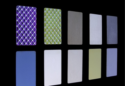 Ist gefärbter Edelstahl mit herkömmlichen farbbeschichteten Baumetallen vergleichbar? Wie entstehen die zum Teil schillernden Oberflächen und wie kommt das enorme Farbspektrum des nichtrostenden Metalls zustande? Soviel vorweg: Gefärbte Edelstahloberflächen sind weder organisch noch haben sie eine Farbbeschichtung. Vielmehr werden die farbigen Metalloberflächen elektrolytisch hergestellt. Die sogenannte chromreiche Passivschicht an der Edelstahl-Oberfläche ist für die Korrosionsbeständigkeit des Materials verantwortlich. Sollte diese beschädigt werden, bildet sie sich unter dem Einfluss von Sauerstoff immer wieder neu. Um Farbeffekte zu erzeugen, muss dieser Aufbau gezielt geplant sein. Das Material wird in einem speziellen Säurebad elektrolytisch behandelt. Abhängig von der jeweiligen Einwirkungszeit baut sich eine Passivschicht auf, welche die entsprechende Farbgebung bestimmt. Durch Interferenzeffekte (Überlagerung des auftreffenden sowie des reflektierenden Lichts) entstehen intensive Farbwirkungen. Entsprechend der Dicke dieser Passivschicht werden unterschiedlichste Farbtöne, von Bronze über Gold, Rot, Purpur und Blau bis Grün, erreicht. Diese verstärkte Passivschicht, deren Dicke zwischen 0,02 und 0,36 µm liegen kann, ist selbst farblos und kann somit auch bei starkem Einfluss ultravioletter Strahlen nicht ausbleichen. Dieser Effekt ist besonders wichtig für Baumaßnahmen, für die dauerhafter Glanz und hohe Farbbeständigkeit gefordert werden. Anders ausgedrückt: Verblassende Oberflächen oder gar auftretende Farbdifferenzen werden durch den Einsatz gefärbter Edelstähle ausgeschlossen.