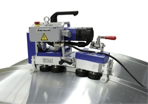 Die neue, leichte und kompakt gebaute Universalfalzmaschine Spider ist zum Falzen von Winkel- und Doppelstehfalzen in einem Arbeitsgang konzipiert. Sie kann sowohl bei geraden als auch bei gebogenen Scharen ab 600 mm Ra­dius eingesetzt werden, vorausgesetzt, die Scharen wurden mit Profilier-Maschinen aus dem Schlebach-Programm hergestellt. Der Spider von Schlebach ist für die Falzhöhen 25 und 38 mm universell einsetzbar – Zubehör für andere Profilhöhen ist optional erhältlich. Sein robuster Motor mit Drehzahlregelung ermöglicht Falzgeschwindigkeiten bis zu 14 m/min. Ein weiteres Merkmal ist der Sensor zur Falzerkennung, der in Verbindung mit einer intelligenten Steuerelektronik das sofortige und sichere Anhalten der Falzmaschine bei Erreichen des Falzendes ermöglicht. Außerdem wird die Maschine mit einer steckbaren, kabelgebundenen Fernbedienung geliefert, um auch bei Rundbögen (kleiner als 2m) oder der Verwendung eines optional erhältlichen Schneidrollensatzes einen sicheren Betrieb zu gewährleisten. Für das Falzen bei niedrigen Temperaturen kann der Spider mit einem nachrüstbaren Winterset, bestehend aus Heißluftgebläse mit Halter, ausgestattet werden.