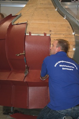 Eine lebende Spenglerwerkstatt ist un-überhörbar, so auch in Halle neun der Dach+Holz. Dort präsentieren angehende und waschechte Spenglermeister lautstark die ganze Bandbreite der Spenglertechnik. Die Spenglermeisterschule Schweinfurt zeigt beispielsweise die Bekleidung eines Zwiebelturms, Kupfertreibarbeiten und andere Bearbeitungstechniken. Den passenden Rahmen für die vertraute Geräuschkulisse bilden imposante Meisterstücke. Die nötigen Hintergrundinformationen liefern die freundlichen Mitarbeiter und Mitarbeiterinnen aus Unterfranken. Spengler-Meisterschule Schweinfurt, Tel.: 0 97 21 / 78 58 31 29,