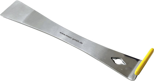 Es ist leicht, stabil und scharf: Das neue M.A.S.C. Multitool MHU. Der offiziell als Universal-Hebeleisen bezeichnete Alleskönner eignet sich perfekt, um Stemmarbeiten auszuführen. Außerdem ziehen Dachhandwerker mit dem perfekt in der Hand liegenden Werkzeug mühelos Nägel heraus oder erledigen damit Hebelarbeiten aller Art. Ähnlich wie mit einem Schuhlöffel können zum Beispiel Steckprofile problemlos geöffnet werden, um Laibungsprofile einzuführen. Aber auch zuvor oder unbeabsichtigt eingerastete Dachrandblenden bzw. Attikaabdeckungen können dank der 40-mm-Arbeitsfläche beschädigungsfrei wieder ausgehebelt werden. Das aus Edelstahl hergestellte Werkzeug ist extrem stabil und verwindungssteif. Es verfügt über scharfe Klingen und eine praktische Öffnung zum Entfernen von Nägeln oder Schrauben. Durch seine flache Formgebung findet es immer Platz in der Werkzeugkiste. Das Universal-Hebeleisen ist folglich der perfekte Begleiter für alle Dachhandwerker und das ebenso bei Sanierungsarbeiten wie bei Neubauten.