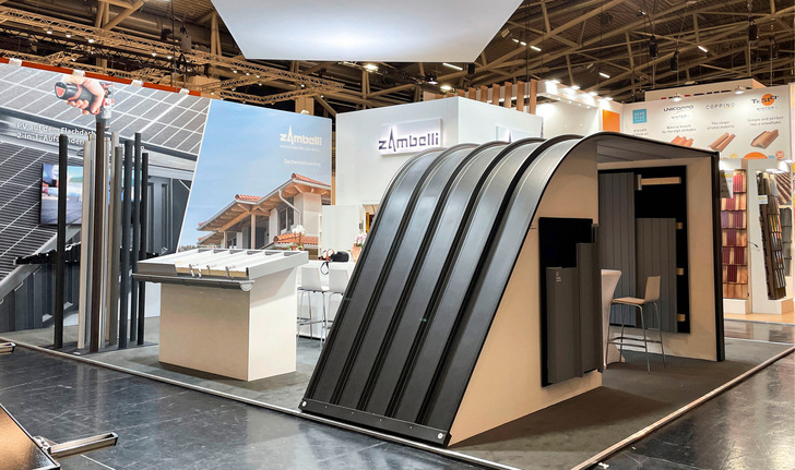Auf dem neu konzipierten Messestand präsentierte Zambelli eine breite Auswahl bewährter Systeme und Neuerungen. Die ausgestellten Produkte der Bereiche Dachentwässerung und Gebäudehülle unterstrichen Zambellis Anspruch, technische Innovationen mit praktischen Lösungen zu kombinieren. Im Mittelpunkt stand das umfassend überarbeitete Stahlsystem Robust mit optimierter Oberflächenstruktur sowie verbesserten Details für höhere Langlebigkeit und Flexibilität. Das neue Farbsystem wird im Laufe des Jahres unter dem neuen Namen Zambelli Colordur verfügbar sein. Ein weiteres Highlight war das modernisierte Wasserfangkasten-System in verschiedenen Designvarianten: Das quadratische Modell überzeugt mit edler Optik ohne störende Kanten, das neue kubische Modell mit schlicht-modernem Design und vielfältiger Anwendbarkeit. Große Aufmerksamkeit zog der neue HSF Ballast-Tank auf sich. Dieses System erlaubt eine sichere Aufständerung und zugleich stabile Ballastierung von PV-Modulen auf Flachdächern. Interessierte Besucher konnten sich anhand eines Musteraufbaus von der einfachen Handhabung überzeugen.