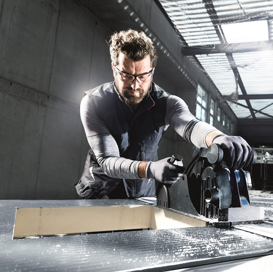 Das Werkzeug verfügt über ein stabiles Kettenschwert, das ohne Startlochbohrung an jeder beliebigen Stelle in das Verbundmaterial eintaucht – maßgenau und mit einem Winkel von bis zu 90 Grad. So angestellt, trennt es im rechten Winkel bis zu 165 Millimeter dicke Sandwich-Paneele mit Ober- und Unterblech aus Aluminium oder Stahl. Dabei spielt es keine Rolle, ob die Oberfläche plan, gewellt oder als Trapez ausgeführt ist. Dank des innovativen technischen Aufbaus kann das TruTool TPC 165 auch an bereits montierten Paneelen problemlos eingesetzt werden. Die Arbeitsgeschwindigkeit liegt bei bis zu 4 m/min. Mit einem Gewicht von weniger als 10 kg und ergonomisch gestalteten Handgriffen lässt sich mit dem Paneel Cutter zudem lange und ermüdungsarm arbeiten.