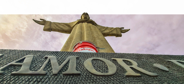 Da sich die 2017 ausgeführten Abdichtungsarbeiten bestens bewährt hatten, erfolgten 2022 die Überarbeitung des unteren Sockels und die Abdichtung des Übergangs vom Sockel an den Fuß der Statue. Erneut kam dabei das Enkopur-Flüssigkunststoffsystem zum Einsatz. Zunächst wurde auf der Fläche der Enke-Universal Voranstrich 933 aufgetragen. Anschließend erfolgte der Auftrag des Flüssigkunststoffs. Dann wurde das Enke-Polyflexvlies eingebettet und die zweite Enkopur-Schicht nass in nass aufgebracht. Im nächsten Schritt verarbeiteten die Facharbeiter des von R-Criar Lda. die Enketop Balkon- und Terrassenbeschichtung. Das System ist die ideale Ergänzung zu Enkopur-beschichteten Flächen. In Kombination mit Enketop-Chips erlaubt es, entsprechende Flächen farblich zu gestalten. Dazu werden farbige Kunststoffchips entweder partiell oder vollflächig eingestreut. Auf diese Weise entstehen vielfältige Möglichkeiten zur Herstellung optisch ansprechender und dekorativer Oberflächen. Am Sockel der Christusstatue wurden Chips in bräunlichem bzw. gräulichem Farbton verwendet. Die entstandene Oberfläche passt sich perfekt an Struktur und Farbgebung des Bauwerks an. Das pflegeleichte Enketop-System sieht nicht nur hervorragend aus, sondern überzeugt zudem durch die auszeichnende Witterungs- und UV-Stabilität sowie seine Chemikalienbeständigkeit.