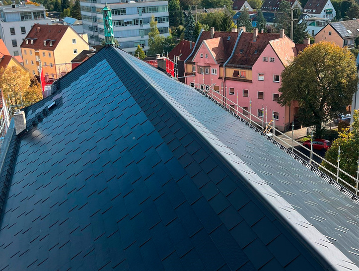 Die von einer Kirchengemeinde in Nürnberg-Mögeldorf beauftragte Dachsanierung ist ein weithin sichtbares Symbol für zeitgemäße Baumaßnahmen. Auf einer Fläche von rund 800 m² entstand auf der denkmalgeschützten römisch-katholischen Pfarrkirche St. Karl Borromäus ein beeindruckendes Energiedach. Schon jetzt gilt die leistungsstarke Photovoltaikanlage als Meilenstein, der Denkmalschutz und Energiewende verknüpft. Zukünftig wird sie einen Großteil des Strombedarfs der Gemeinde decken. Erwartungsgemäß stellte die Kombination von Denkmalschutz und erneuerbarer Energie hohe Anforderungen an Planung und Ausführung. Die Erhard Achtelstetter GmbH, spezialisiert auf Dach- und Metallarbeiten, hat gemeinsam mit Planern, Kirchenverwaltung und dem Landesamt für Denkmalpflege eine interessante Lösung gefunden, die sowohl den historischen Charakter des Bauwerks bewahrt als auch einen wichtigen Beitrag zur Energiewende leistet.