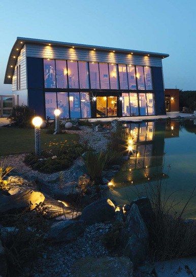 In der abwechslungsreichen Referenzliste des Fachbetriebes taucht auch das Wohnhaus der Familie Stifter in Petersaurach auf. Es ist natürlich kein Zufall, dass großflächige Bereiche des Gebäudes metallbekleidet sind. Mehr noch: Jürgen Stifter erfüllte sich seinen Metalltraum von einem direkt am Teich liegenden Passivhaus, das nicht nur gut aussieht, sondern mit gekonnten Details überrascht.