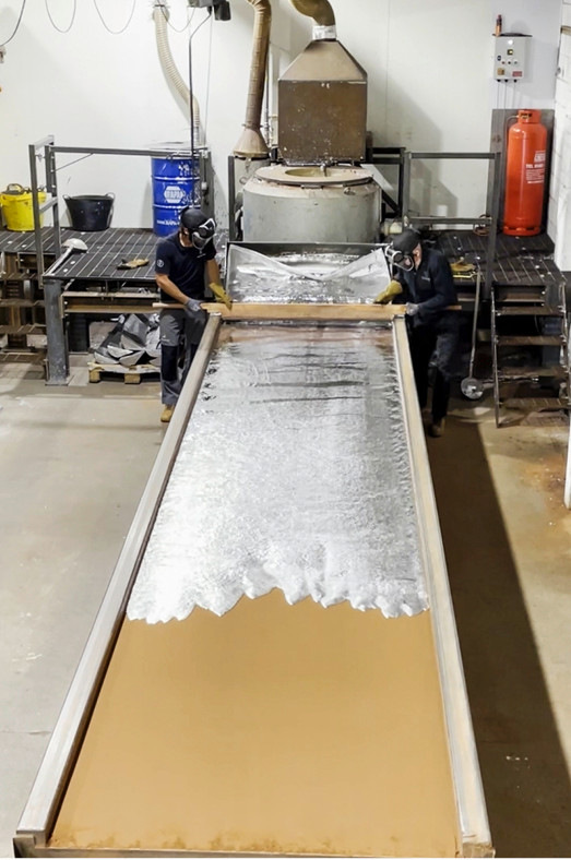 Als einer der führenden Experten bei der Herstellung von auf Sand gegossenem Blei hat Bradley Smith sein gesamtes Fachwissen eingebracht. Er war gemeinsam mit seinem Team maßgeblich dafür verantwortlich, dass die nach historischem Vorbild hergestellten Bleiplatten eine möglichst authentische Optik und Textur aufweisen.