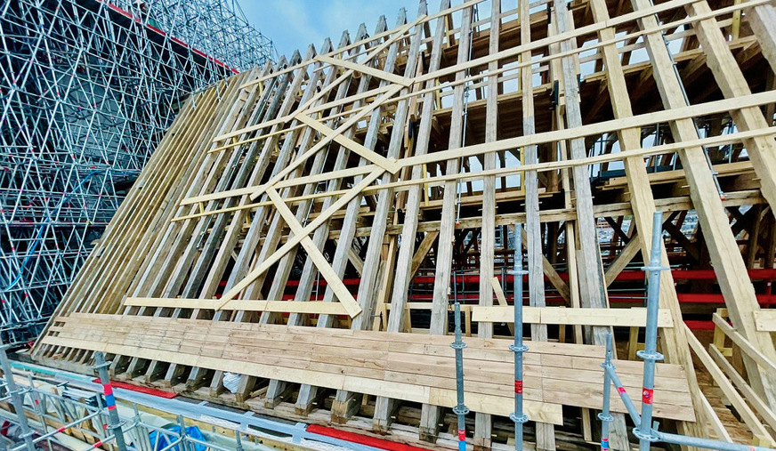 Für den Wiederaufbau des Daches wurden über 2000 Eichen gefällt. Nachdem die Arbeiten an Dach und Turm abgeschlossen sind, soll die Kathedrale vollständig wiedereröffnet werden.