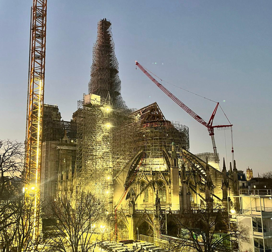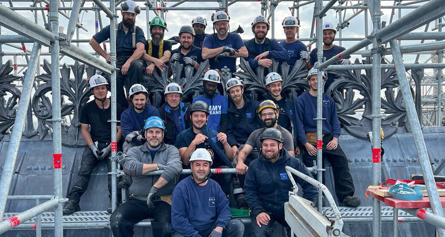 Dieser Fachaufsatz fokussiert sich auf die Schaffenskraft französischer Dachhandwerker und Compagnons, die einen wesentlichen Teil zum Wiederaufbau des UNESCO-Baudenkmals beitragen. Seit drei Jahren ist die Balas-Gruppe federführend am Wiederaufbau der Kathedrale beteiligt und stellt dabei ihr umfassendes Fachwissen in den Bereichen Dachdeckung und Steinmetzarbeiten unter Beweis. Ihre auf Dachdeckerei und Kulturerbe spezialisierte Abteilung beteiligt sich zusammen mit mehreren Unternehmen an der Restaurierung des Daches der Kathedrale. Dazu zählen beispielsweise der bemerkenswerte Spitzturm, das Querschiff oder das riesige Kirchenschiff.