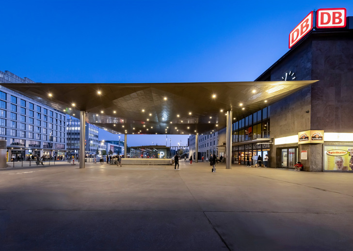 Die Gestaltung des Ulmer Bahnhofsplatzes basiert auf dem Entwurf der Architektengemeinschaft Hummert und Hullak Rannow. Trotz zahlreicher Herausforderungen, die sich u. a. aus politischen Diskussionen und veränderten Rahmenbedingungen ergaben, konnte der Entwurf erfolgreich weiterentwickelt werden. Die Bekleidung der Vordächer mit gefärbtem Edelstahl zählt zu den markantesten Projektmerkmalen. Die individuell gefertigten Edelstahlelemente verleihen der filigranen und schlanken Dachkonstruktion eine besondere Leichtigkeit und setzen einen ästhetischen Akzent.