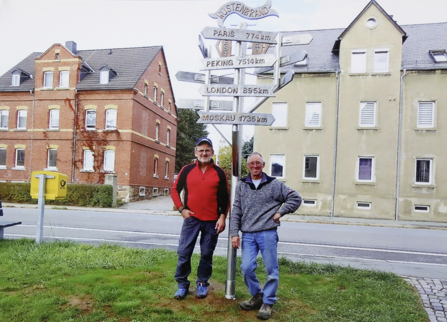 Um unseren kleinen Heimatort Wüstenbrand etwas „weltbekannt“ zu machen, haben wir schon einige verrückte Sachen unternommen. Die erste Aktion starteten wir vor mehr als 20 Jahren. Ein originales Ortseingangsschild (natürlich nicht heimlich gestohlen) brachten wir nach Nordkanada zum berühmten Schilderwald von Watson Lake, um es dort zwischen Zehntausenden anderen Schildern aus aller Welt zu montieren. Das war zwar ein großes Abenteuer, klempnertechnisch, aber bis auf einen Alurahmen mit Griff für das verpackte Schild und einige Spenglerschrauben für die spätere Montage keine allzu große Herausforderung. Wesentlich interessanter war da schon die nächste Aktion einige Jahre später: Der Bau eines Wegweisers komplett aus Kupfer! Entstanden ist diese etwas ausgefallene Idee in geselliger Runde und reichlich Bier spielte dabei eine nicht unwesentliche Rolle. Gesehen und auch fotografiert habe ich viele derartige Objekte während meiner zahlreichen Reisen auf fast allen Kontinenten. Oft sind es Touristenattraktionen, die meist an exponierten Stellen stehen und sich gerne auch noch mit einem Superlativ schmücken, nördlichster, höchster Punkt usw. Nicht alle, aber in der Mehrzahl sind es recht einfache Holz- oder Stahlkonstruktionen, denen sicherlich an ihren oft feuchten und auch sturmumtosten Plätzen kein allzu langes Leben beschieden sein wird. Das wollten wir besser machen. Die Idee: „Wir bauen so ein Teil aus wetterbeständigem Kupfer und stellen es bei uns in Wüstenbrand auf!“