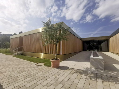 Um zu prüfen, ob das Material für die vorhandenen Gegebenheiten geeignet ist, führten die Bauverantwortlichen vorab einen Test durch. Hierfür legten sie den gefärbten Edelstahl über mehrere Wochen in dem stark mineralhaltigen Wasser in Bad Wiessee ein. Dabei überzeugte das Material nicht nur mit seiner weiterhin eleganten Optik, sondern auch mit seiner hohen Beständigkeit. „Die hochwertige Oberfläche aus goldgefärbtem Edelstahl im Zusammenspiel mit der Holzfassade verleihen dem Jod-Schwefelbad nicht nur einen luxuriösen Charme, sondern schaffen so auch ein ganzheitliches Erlebnis für Körper und Seele“, schwärmt Bad-Chefin Renate Zinser. „Das ist genau das, was wir uns für unsere Gäste wünschen.“ Auch Rimex-Vertriebsleiter Bruno Rösch zieht ein positives Fazit: „Unser T22 Hairline Prestige Gold ist genau die richtige Wahl für das Gebäude gewesen. Wir sind sehr glücklich darüber, das Projekt begleitet zu haben.“