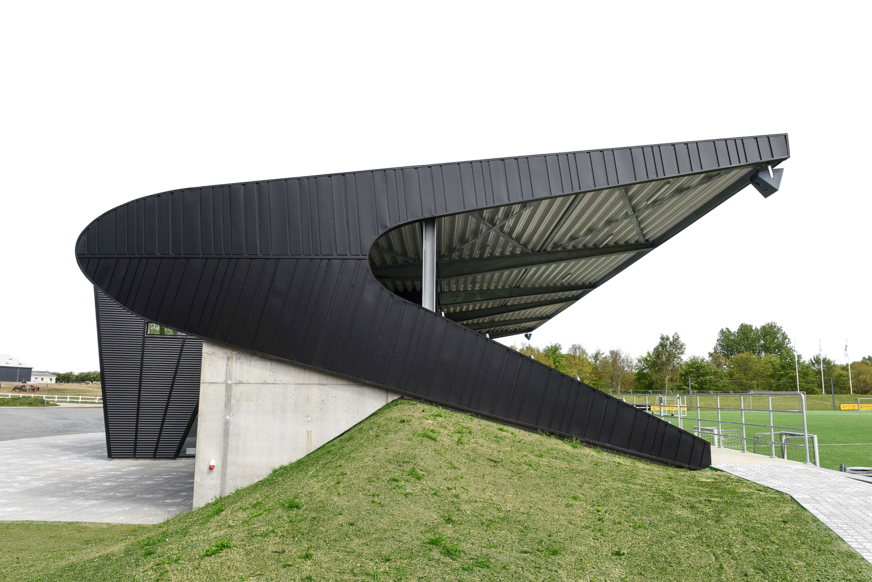 Rund 20 Autominuten nördlich von Jels, dem Produktions- und Logistikzentrum von Lindab Profil für Dänemark und Deutschland, liegt der Ort Vejen. Der Sportplatz seines Fußballvereins SF Vejen ist ein beliebter Treffpunkt. Die Zuschauer waren bislang jedoch Wind und Wetter ausgesetzt, da ein Unterstand fehlte. Als langjähriger Hauptsponsor stiftete Lindab den Fans nun eine Tribüne. Das Besondere an der Konstruktion: Von Dach- und Wandprofilen bis hin zum Tor kommen an ihr Produkte aus allen Segmenten des Geschäftsbereichs Baukomponenten zum Einsatz, die teilweise als Sonderlösung realisiert wurden.